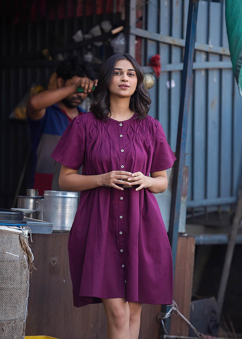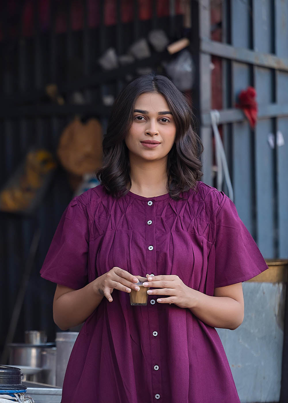 Step out in style with our Front-Open Short Dress, designed to make a statement with its unique pleated design. Crafted from premium cotton-linen fabric, this mini dress offers a perfect blend of comfort and elegance. The dramatic sleeves add a bold touch, while the button-front closure and functional pocket ensure practicality. Ideal for casual outings or chic daywear, this dress is a versatile addition to your wardrobe.